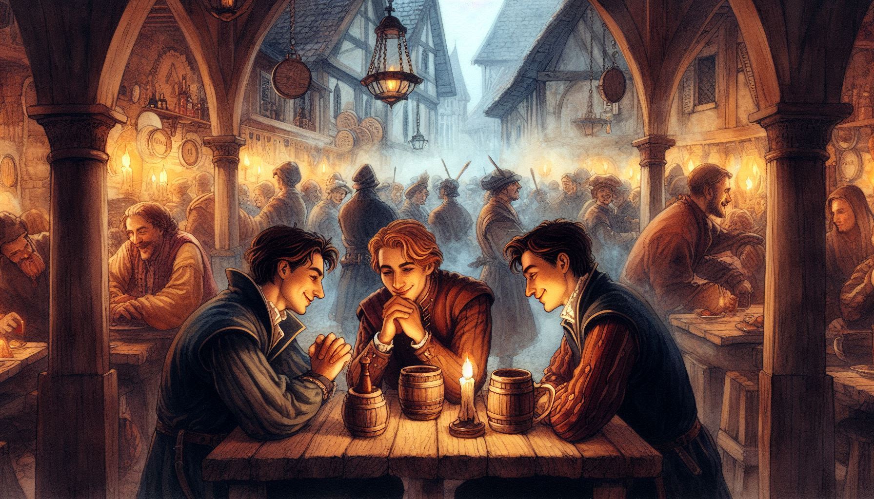 Vicino al camino, nella zona più calda e meno ventilata, sedevano Lorenzo, Giacomo Bartolomeo e Matteo, discendenti da note stirpi di mercanti e notai. Tre figli di pancia piena e tasca ereditata, famosi in città per essere capaci di trasformare ogni sera in una bravata e ogni conoscente in una vittima di scherzi, soprattutto se di ceto più basso.