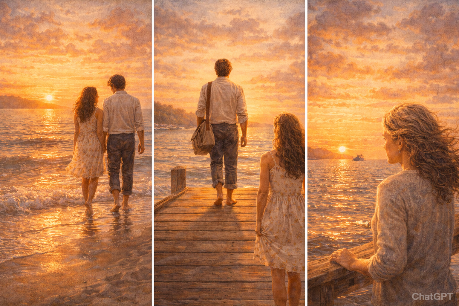 Il tramonto era il momento che amavano particolarmente: quando il cielo si tingeva d’arancio e il mare sembrava trattenere il fiato. In quei minuti silenziosi, lo sentiva ancora accanto — la sua mano sulle sue, la voce che sussurrava: