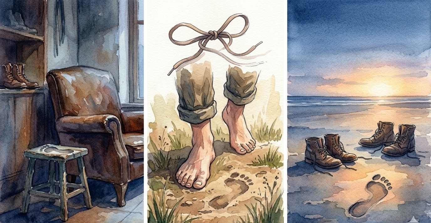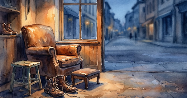 Le scarpe, a riposo per un po’, si raccontavano le storie dei suoli che avevano calpestato e della relazione di amore-odio con i piedi che le calzavano. L’uomo trascorse così la sua esistenza: a piedi nudi osservava la strada dall’altro lato della sua vetrina.