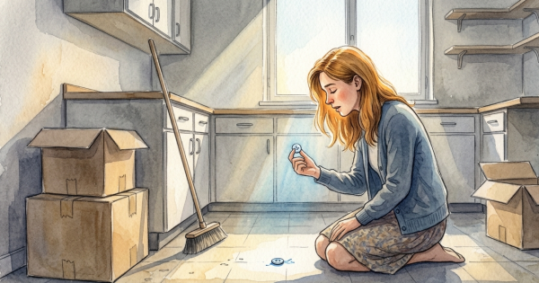 Era un bottone. Un bottone minuscolo, lucido, di madreperla, cucito con filo azzurro su un cappotto da uomo. Sara lo trovò sotto il tavolo della cucina, mentre spazzava per l’ultima volta prima di consegnare le chiavi. La luce obliqua del mattino lo fece brillare sul pavimento di linoleum come una moneta sacra caduta da un altare.
