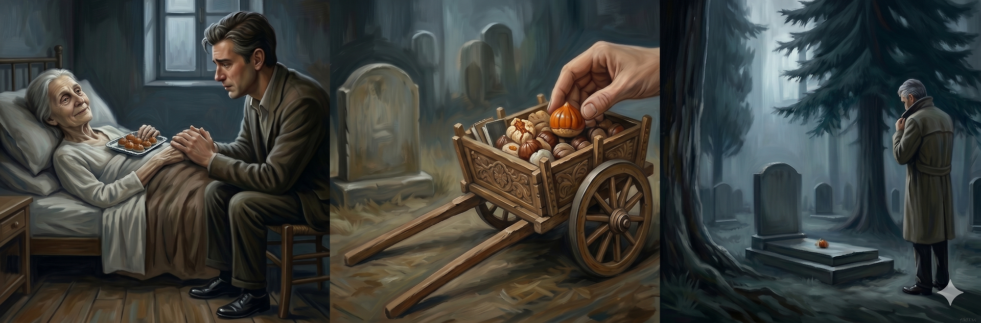 Uscii senza guardarla un'ultima volta, con le lacrime negli occhi: l'avevo vista per l'ultima volta. Il sole del tramonto chiudeva il giorno e tant'altro. C'è chi mi guarda con meraviglia quando il giorno dei defunti lascio una castagna di Martorana sopra una tomba. Ma io sono certo che Marta ne è felice.
