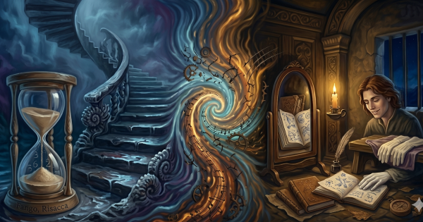 I versi si muovono lungo l’immagine verticale di una scala per spiegare come scorre la nostra vita, tra momenti belli e momenti difficili. L'atmosfera è calma e fa riflettere, come quando ci fermiamo un attimo a pensare a quanti anni sono già passati. In questa poesia, Eliseo Pisinicca descrive il tempo come un compagno di viaggio che ci cammina accanto, ma che non riusciamo mai a fermare o a capire del tutto.