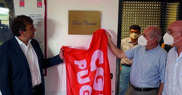 La targa di intitolazione a Paola Clemente della sala della Cgil Bari