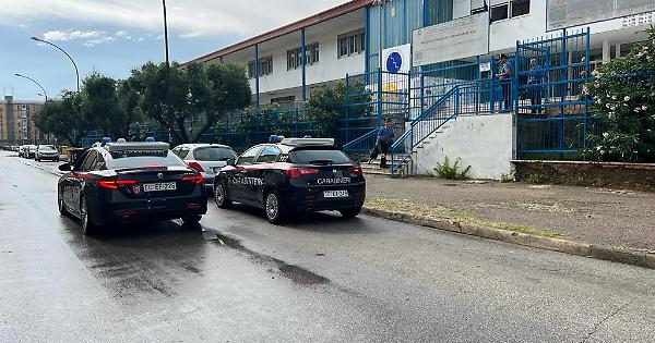 Carabinieri all'esterno della scuola media Pirandello (foto F. Manfuso)