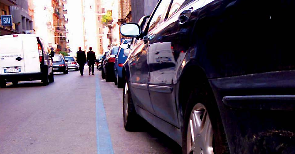 Parcheggi a pagamento, auto in sosta in un'area delimitata da strisce blu