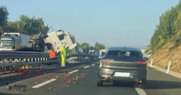 Un tir si è ribaltato, perdendo il carico di pomodori che trasportava e disperdendo sulla carreggiata anche del gasolio. A causa dell'incidente è stato chiuso il tratto dell'autostrada A14 compreso tra Canosa di Puglia e Andria in direzione Bari. L'episodio è avvenuto intorno alle 7.40 di oggi, lunedì 2 ottobre. Il conducente del mezzo pesante, un 35enne di origini tunisine, è stato soccorso dal personale del 118 e si trova ora nel pronto soccorso dell'ospedale "Bonomo" di Andria per accertamenti. Secondo quanto emerso finora dai rilievi effettuati dagli agenti della Polstrada, il carrello del camion si sarebbe spezzato separandosi così dalla cabina. Il carico di pomodori ha invaso anche la carreggiata nord su cui si viaggia su una sola corsia.