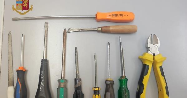Pertanto, considerando anche una certa insofferenza al controllo palesemente mostrata dai due uomini, i poliziotti con l’ausilio di un altro equipaggio delle Volanti hanno poi proceduto al controllo dell’abitacolo della Zafira recuperando sotto il sedile anteriore otto grossi cacciaviti, uno scalpello, una tronchese ed una lima.
