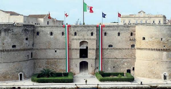Ore 11.00 (circa) previsto termine celebrazione Santa Messa. A seguire defilamento della Fanfara di Presidio con al seguito il corteo delle Autorità per le strade cittadine fino al raggiungimento del Monumento al Marinaio, dove eseguirà l’Inno Nazionale. Durante l’esecuzione dell’Inno, due Vigili del Fuoco, appartenenti al Nucleo specialisti Speleo-Alpino-Fluviale (Saf), si caleranno dalla sommità del Castello Aragonese fin giù alla banchina, lato Canale, dispiegando due cortine tricolori sugli spalti esterni, ai lati della scalinata che consente l’accesso al mare. Per l’occasione saranno allestiti presso Corso due Mari stand promozionali della Marina Militare e dei Vigili del Fuoco.