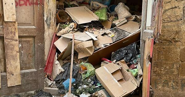 Il locale colmo di rifiuti