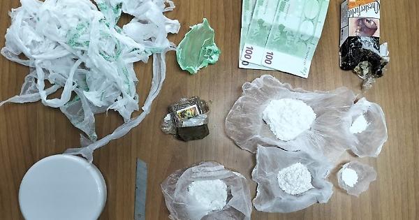 I sospetti dei poliziotti hanno avuto riscontro: in un mobile della cucina sono stati rinvenuti 5 involucri di cellophane termosaldato contenenti cocaina per poco meno di 50 grammi e sul tavolo due panetti di hashish per complessivi 120 grammi, oltre a tutto il necessario per il confezionamento in dosi della sostanza stupefacente.