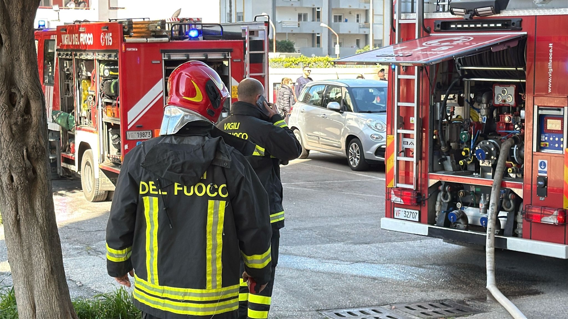 Anche gli agenti della Polizia di Stato e della Polizia locale sono rapidamente giunti in zona. L'altezza considerevole non ha consentito l'utilizzo di una autoscala, quindi i Vigili del fuoco hanno "attaccato" l'incendio dall'interno dello stabile.