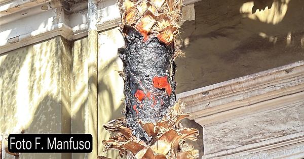 Nel pomeriggio di mercoledì 21 maggio in via Berardi in pieno centro a Taranto ha preso fuoco un albero di Palma.
