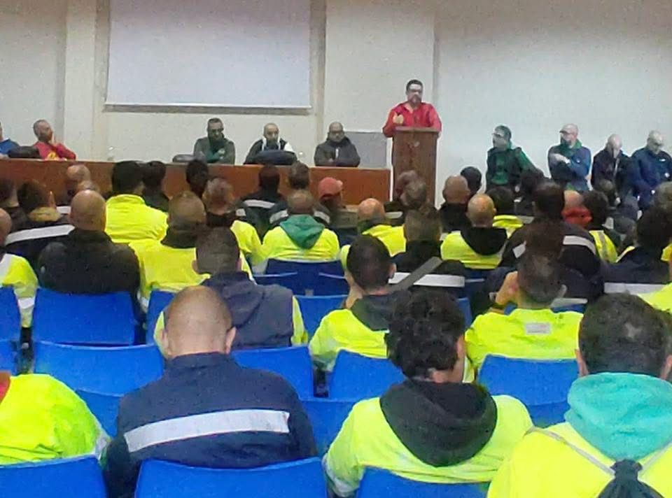 Assemblea dei lavoratori nella sede di Acciaierie d'Italia a Taranto