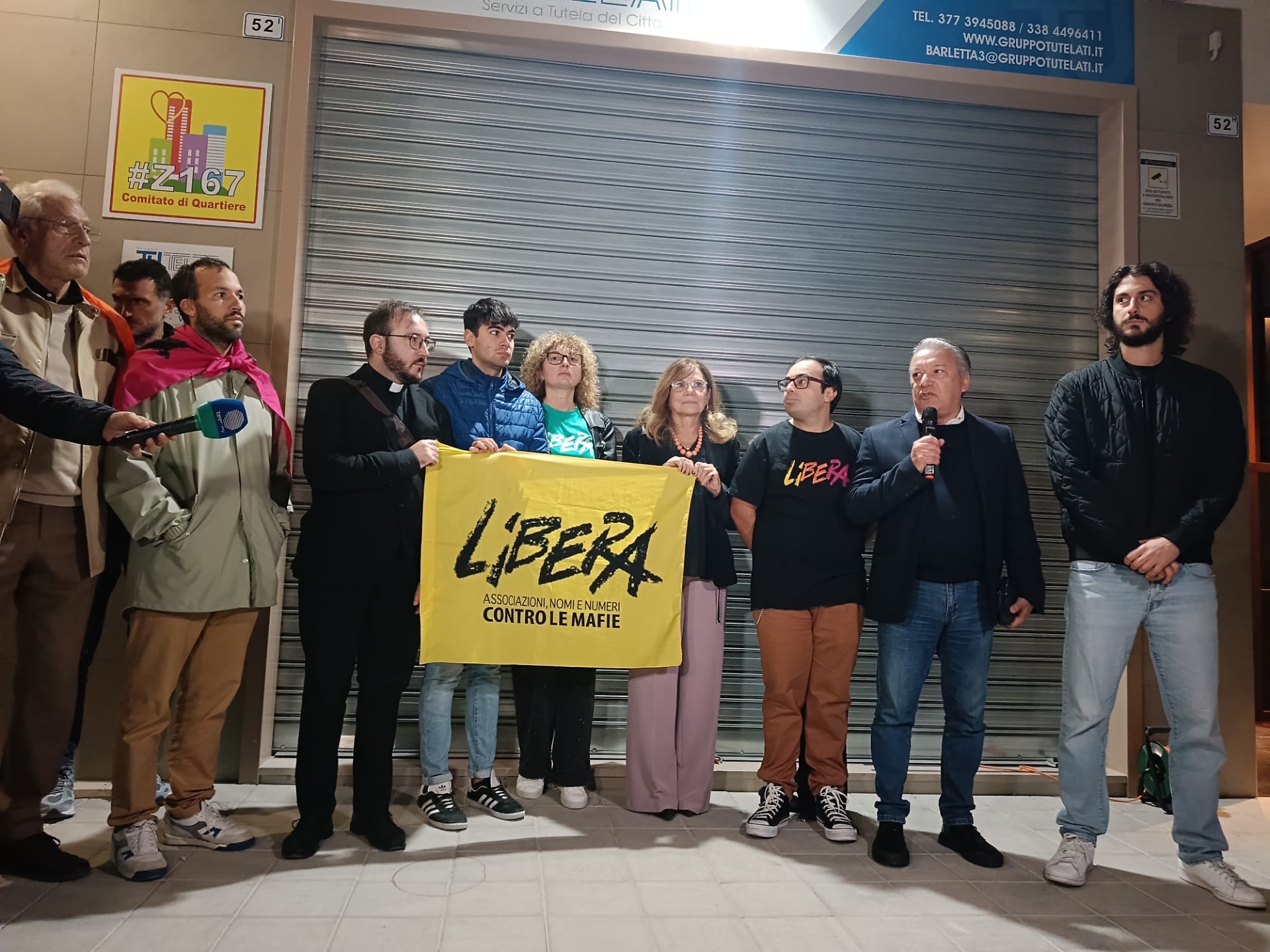 BARLETTA - Nonostante la paura ancora viva dopo l’agguato, la città ha scelto di farsi sentire. Centinaia di persone si sono radunate per manifestare vicinanza a Giuseppe Di Bari, il presidente del Comitato di Quartiere Zona 167 ferito venerdì sera da colpi d’arma da fuoco alle gambe. Il sit-in, promosso dal comitato insieme al presidio cittadino di Libera, ha trasformato la tensione di quei momenti in un segnale di forza collettiva.