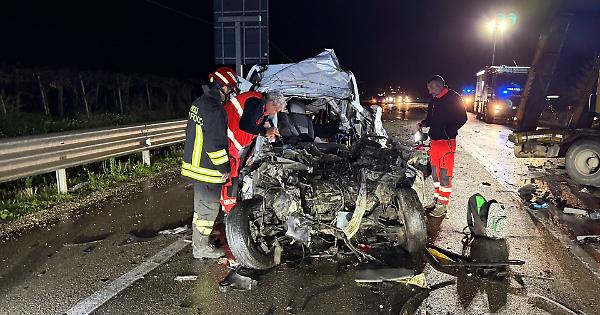 A scontrarsi sono stati un tir che trasportava mezzi meccanici e una Fiat Doblò. Lo schianto è stato devastante: il furgone è andato completamente distrutto e i due occupanti sono deceduti sul colpo, senza lasciare possibilità alcuna ai soccorritori del 118 giunti rapidamente sul posto.