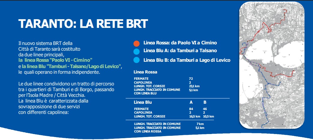 TARANTO - Molti ne ignorano il significato, Bus Rapid Transit. E' il servizio di collegamento pubblico che viaggia in superficie su un percorso riservato, delimitato da cordoli, con semafori dedicati, sempre verdi.