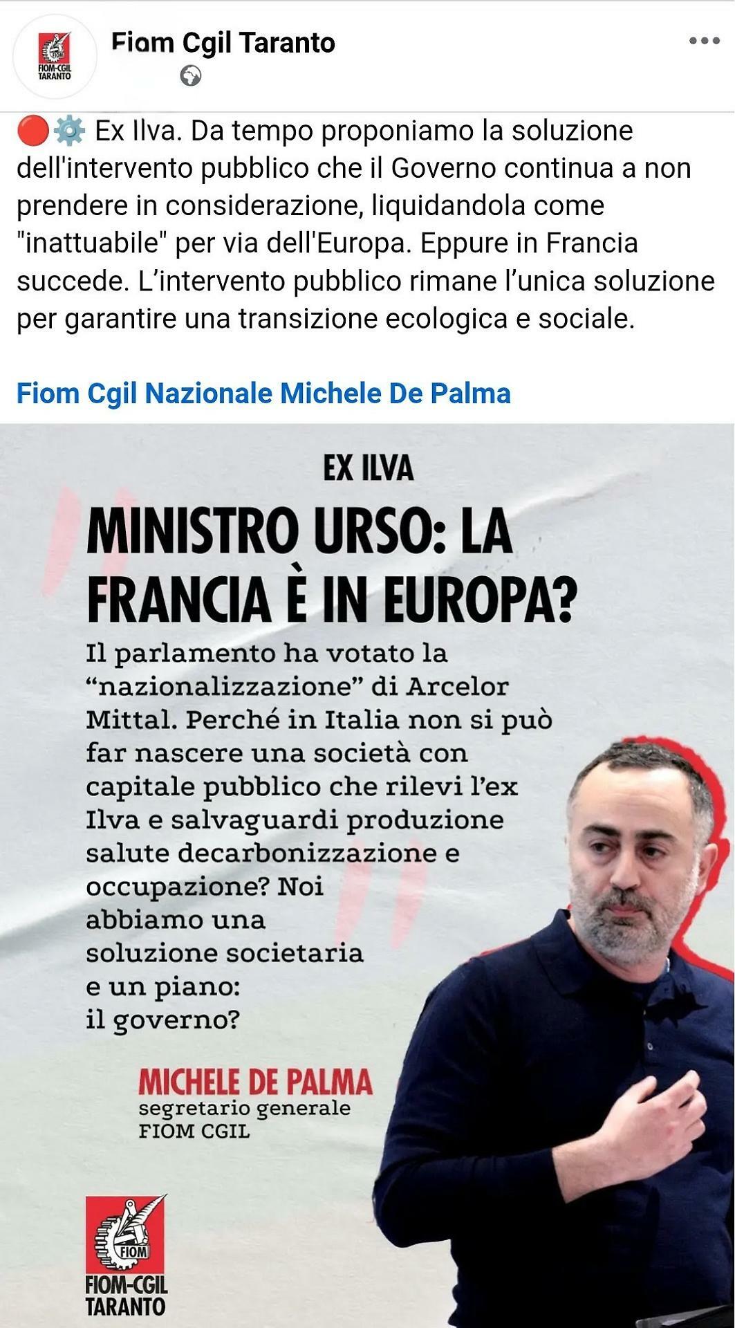 In Italia, è stata la Fiom a tracciare un parallelo tra la situazione francese e quella italiana, dove a tenere banco è la crisi dell'ex Ilva di Taranto, oggi Acciaierie d'Italia in amministrazione straordinaria. I metalmeccanici della Cgil ribadiscono la necessità di un "intervento pubblico".