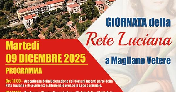 TARANTO – Sarà Magliano Vetere ad accogliere, martedì 9 dicembre 2025, il raduno nazionale della Rete delle Città di Santa Lucia, appuntamento dedicato alla Giornata della Rete Luciana in preparazione alla solennità della vergine e martire. L’iniziativa corona il percorso avviato lo scorso 11 dicembre a Erchie, quando i Comuni di Erchie, Motta Santa Lucia, Villa Santa Lucia, Magliano Vetere e Francavilla Marittima hanno siglato il Protocollo d’Intesa che ha sancito la nascita della Rete, oggi ampliata con l’ingresso delle Comunità di Castrocielo, Matino (Lecce) e Santa Lucia del Mela.