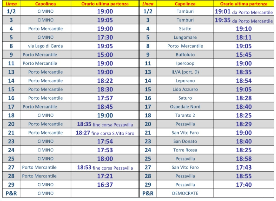 Per la giornata della vigilia di Capodanno, l’azienda ha disposto una rimodulazione del servizio nelle ore pomeridiane. In particolare, tutte le linee osserveranno una chiusura anticipata, con le ultime corse programmate entro le 19.30, segnando così il termine del servizio giornaliero.