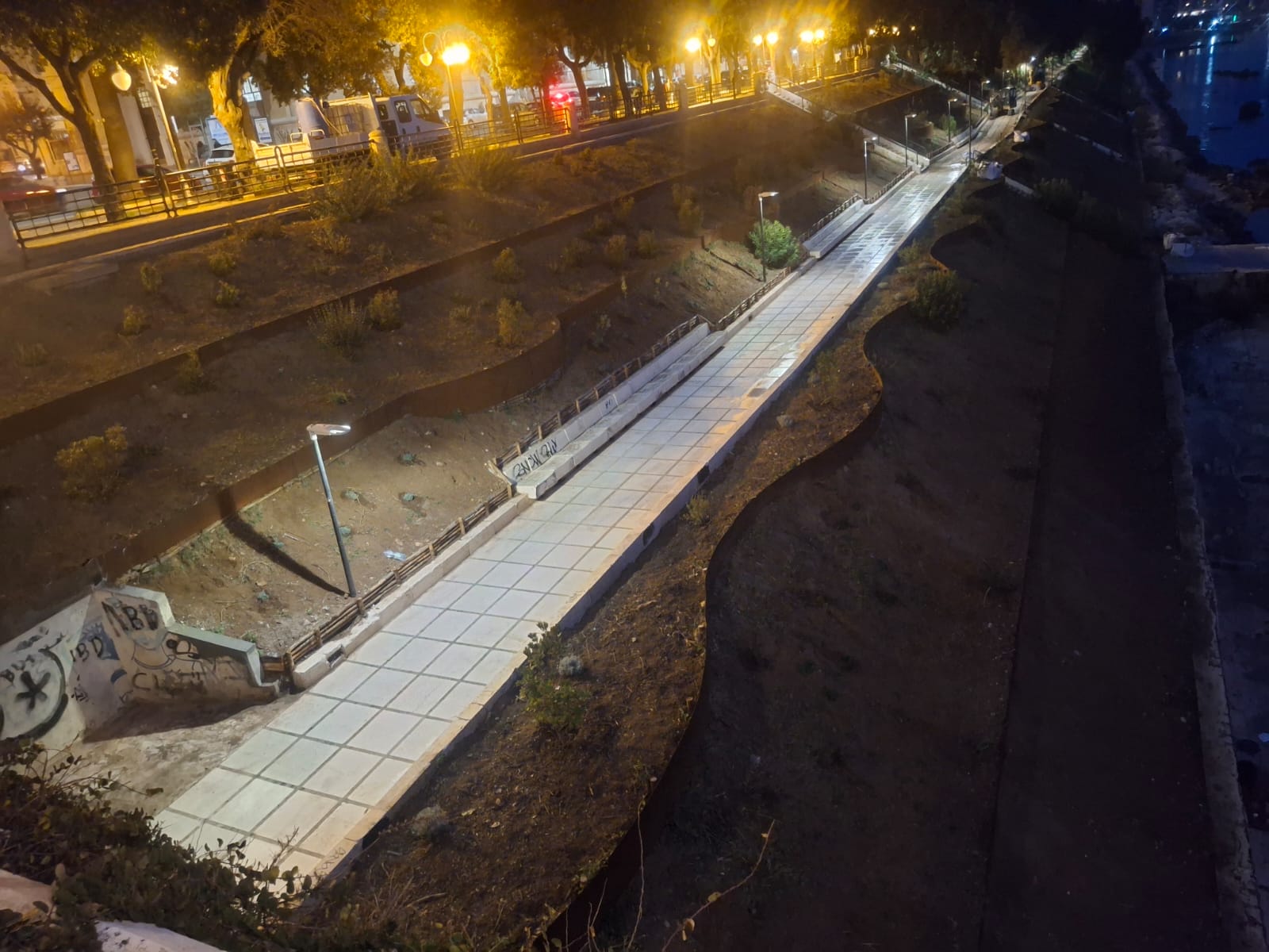 Negli ultimi giorni è stato effettuato in più punti lo scarico del terriccio necessario alla piantumazione, che in buona parte si va così completando con le essenze arboree suggerite dagli agronomi. Le piante però non sono state messe a dimora nel tratto inferiore della scarpata, a livello del mare, in quanto la salsedine ne avrebbe impedito l’attecchimento; quindi si permetterà la crescita spontanea della vegetazione, che di volta in volta verrà seguita, per impedirne uno sviluppo disordinato.