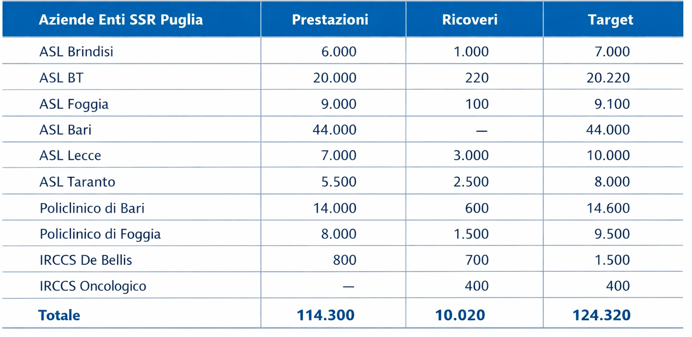 Nel complesso, l’intervento prevede il recupero di 124.320 prestazioni, tra ambulatoriali, ricoveri e day service, grazie a un finanziamento complessivo di 15 milioni di euro, ripartito tra le aziende sanitarie sulla base dei fabbisogni rilevati e dei tempi di attesa registrati.