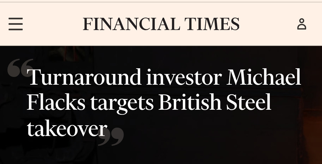 L'uomo con il quale il governo italiano ed i commissari straordinari hanno intavolato il negoziato per la cessione di Acciaierie d'Italia, gruppo siderurgico oggi in amministrazione straordinaria e che fa perno sullo stabilimento di Taranto in crisi da tempo non vuole fermarsi al Belpaese nella sua scalata all'acciaio europeo. In una intervista al Financial Times infatti Flacks ha dichiarato di essere interessato a British Steel, altro gigante del mercato piegato da una difficile fase di travaglio. Passata dagli indiani di Tata Steel ai cinesi di Jingye, BS è stata nazionalizzata per evitare la chiusura degli ultimi altiforni del Regno Unito. Una situazione-fotocopia rispetto a Taranto che evidentemente ingolosisce Flacks, il quale punta ad un "accorpamento delle attività siderurgiche europee", in un settore in cui ritiene di vedere "un’opportunità straordinaria".