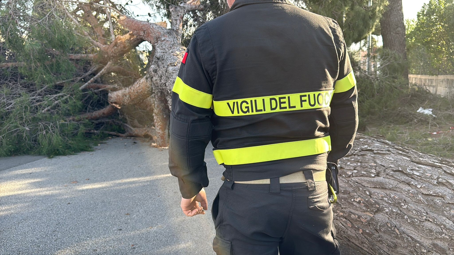 Sul posto sono intervenuti i vigili del fuoco per la messa in sicurezza e la rimozione dell’albero mentre i carabinieri hanno disposto la chiusura temporanea della strada.