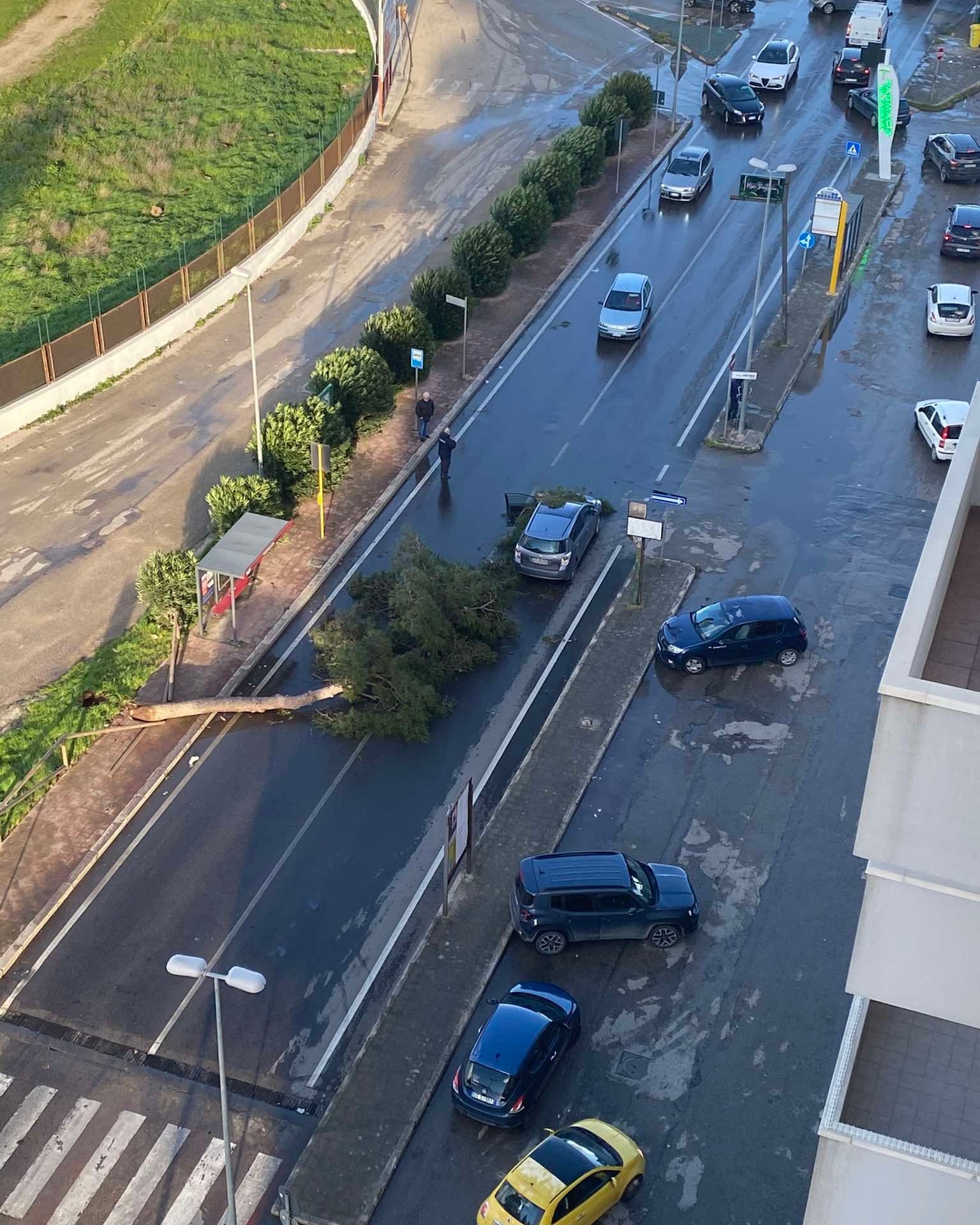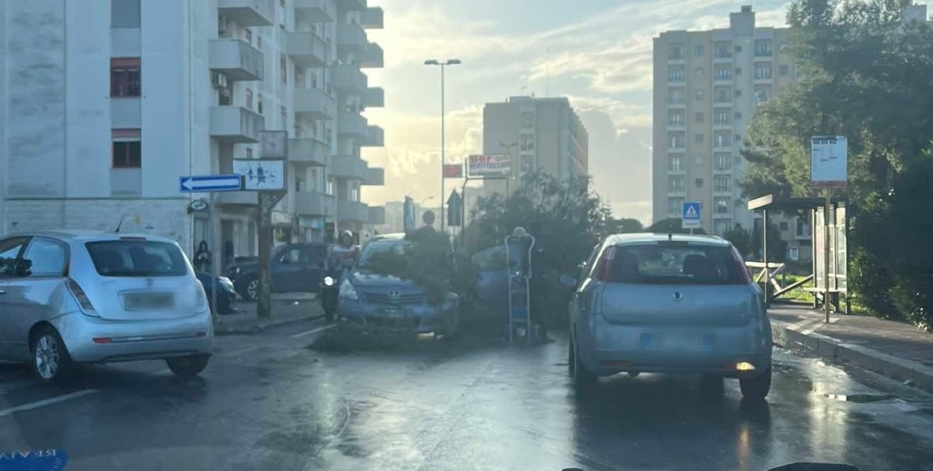TARANTO - Raffiche di vento e alberi crollati in diversi quartieri cittadini. Dopo il pino caduto in via Settembrini e i danni registrati tra via Cugini e via Atenisio, l’episodio più serio si è verificato nel quartiere Tramontone.