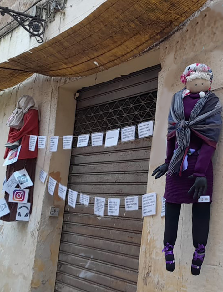 Sulla Quaremma di Isonomia sono stati applicati oggetti che richiamano l’universo dei ragazzi, tra cui sneakers, simboli dei social network e una cassetta postale destinata a raccogliere idealmente le loro parole. Un segnale di stop con la scritta ascolta invita i passanti a fermarsi e leggere. In alcuni momenti della giornata i giovani attori della compagnia teatrale Aretè danno vita a flash mob in via Battista, leggendo pubblicamente i messaggi dei coetanei. Tra le frasi più significative compare l’invito ascoltami quando sto in silenzio.