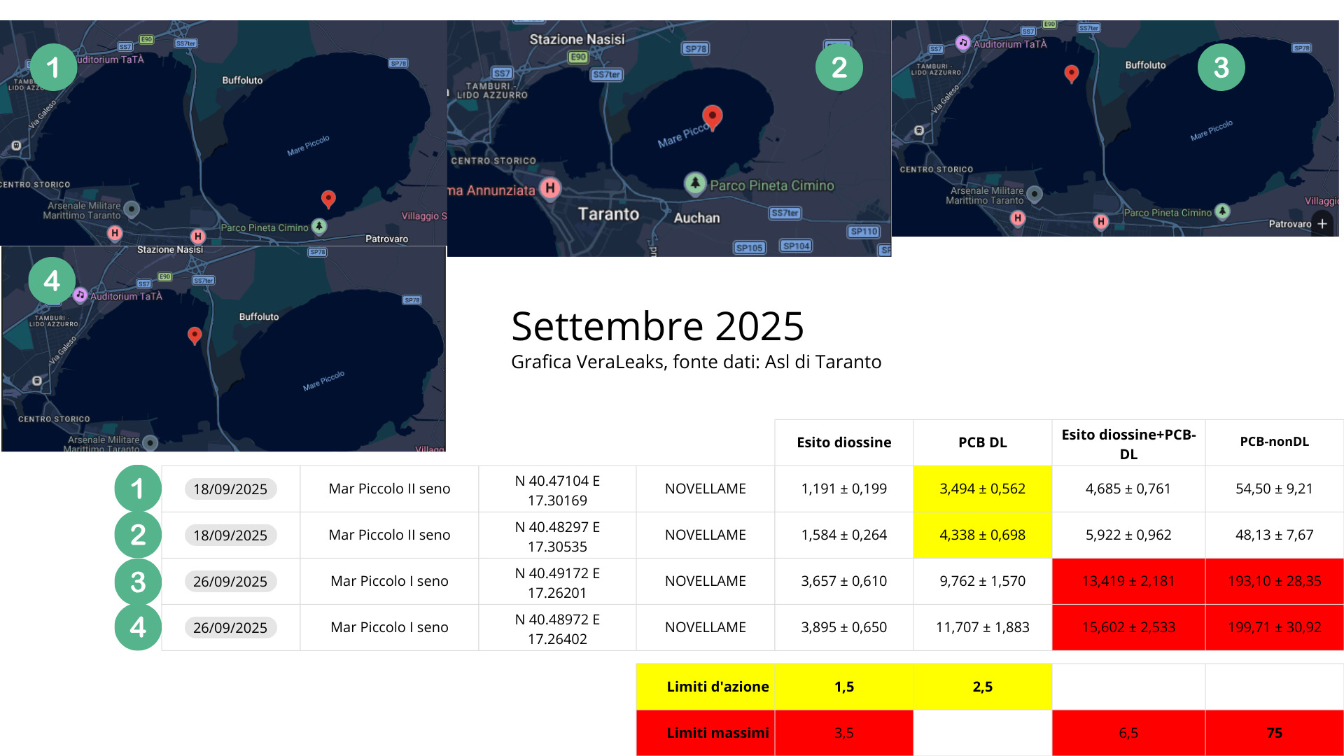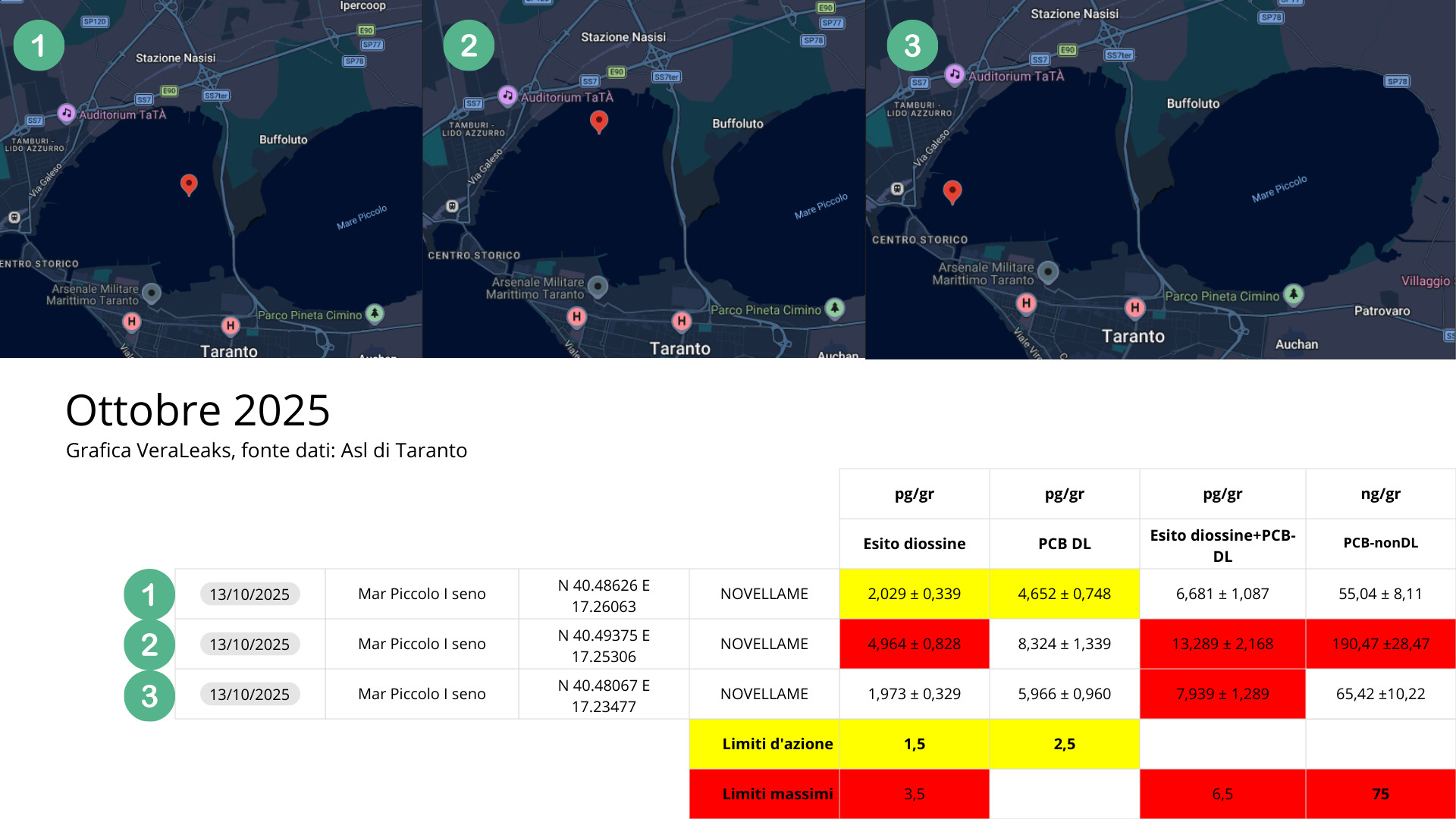 Nel documento si sottolinea come, nei mesi di settembre e ottobre 2025, i controlli effettuati sulle cozze giovani abbiano registrato valori superiori ai limiti massimi e ai livelli di azione per diossine e pcb, in base ai parametri stabiliti dal regolamento europeo 2023/915. Dati che, secondo l’ambientalista, mostrerebbero un quadro già critico nei mesi precedenti e un andamento che si ripeterebbe nel tempo.