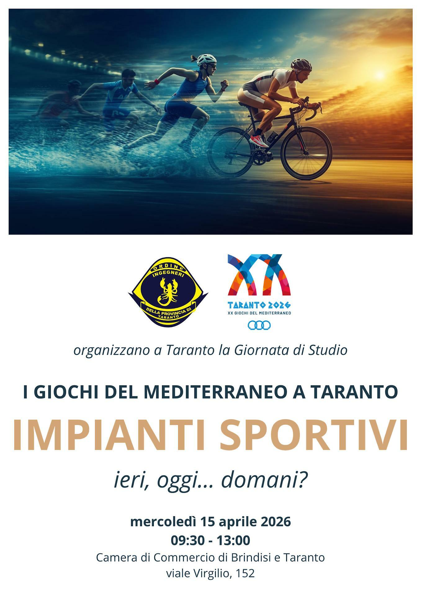 L’appuntamento è fissato alle ore 09:00 nella sede della Camera di Commercio di Taranto Brindisi, in viale Virgilio, e vedrà la partecipazione della struttura commissariale dei Giochi, del Comune di Taranto e di numerosi professionisti impegnati nella realizzazione degli interventi.