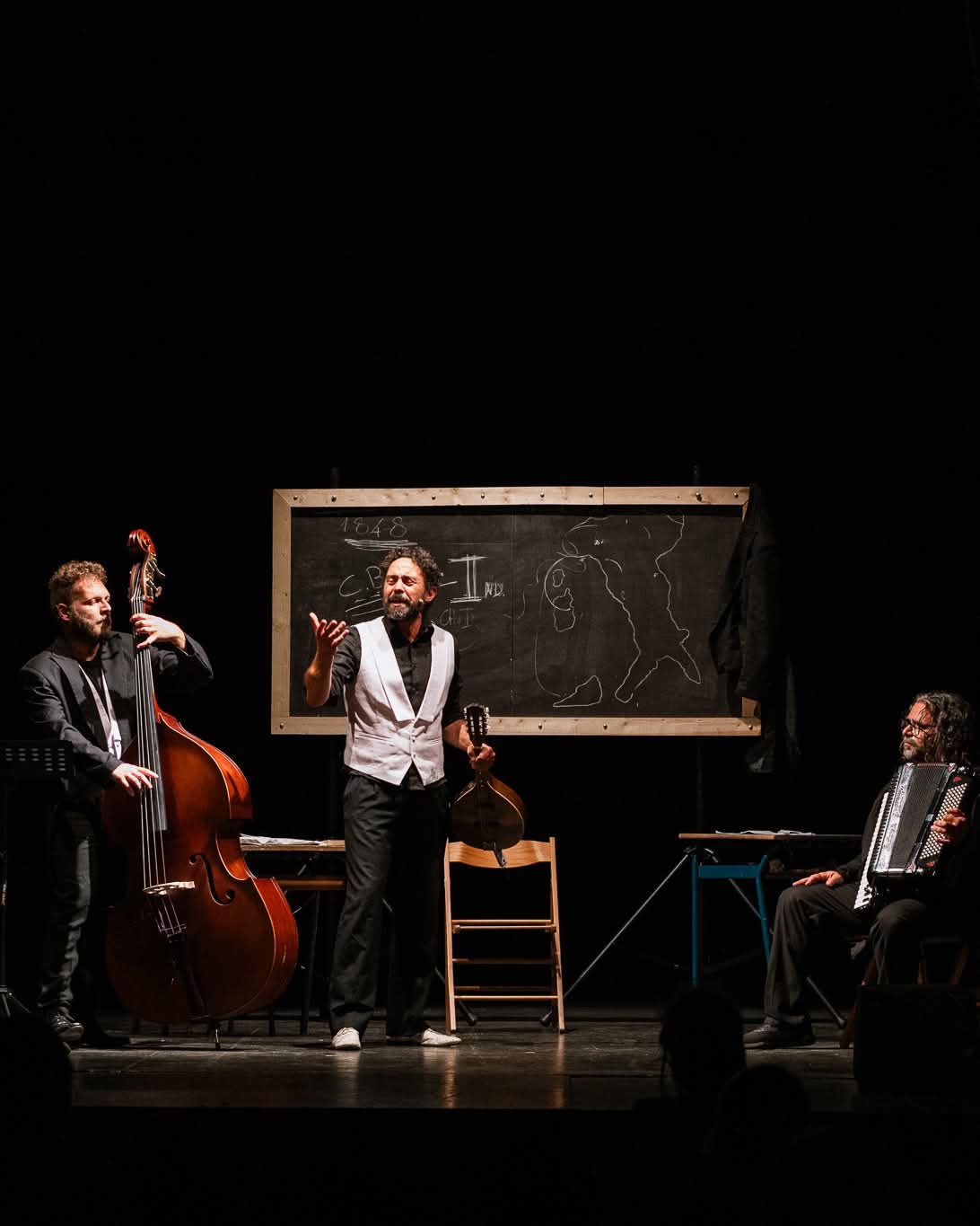 Testo e regia: Giuseppe Ciciriello; musiche: Piero Santoro. Giuseppe Ciciriello: narrazione e mandolino; Loris Leoci: narrazione, contrabbasso e chitarra; Piero Santoro: fisarmonica; costumi: Maria Martinese; luci: Walter Mirabile.