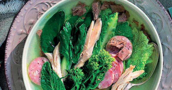 Quando i Napoletani erano ancora noti come mangiafoglie, dal ‘500 al pieno ‘700, il loro veritiero piatto delle feste, che oggi sopravvive a malapena presso famiglie tradizionaliste e in pochi ristoranti, era il Pignato maritato, o Minestra maritata, un brodo grassissimo con carni “maritate” alle splendide verdure degli orti vesuviani: il brodo è a base di ossa con midollo, carne di vitella, cappone, gallina, pancetta o vulva di maiale, salsicce e salame; in questo denso brodo cuociono a fuoco dolce scarola (una verdura amara molto usata nel Mezzogiorno), cicoria, broccoletti, verze, cime di rapa; un bel pezzo di caciocavallo piccante e del peperoncino piccante: e nei bei tempi del “grasso è bello”, quando il problema alimentare non era certo l’overdose di chili e calorie, un bel Pignato maritato (a Napoli un piatto veramente riuscito non è buono ; è bello!) doveva aver sopra “un palmo di grasso”. Il marchese Giovanbattista Del Tufo, alla fine del ‘500, prevedeva fra le carni anche muso di vitello, piede di porco, un orecchio, salsicce di vari tipi, e fra gli erbaggi finocchio ed anice. Ricchissimo anche il Pignato maritato descritto da Antonio Latini col nome di Minestra di Foglia alla Napolitana nel suo Lo scalco alla moderna (Napoli 1692): coerentemente col gusto del tempo, contiene anche uva passa e pinoli, acini d’uva acerba, cipolle ripiene di vitella battuta con rossi d’uova e mollica di pane ammollata nel brodo, salsicce di interiora, lingua di maiale, funghi, zucchine ripiene.Come scrive Emilio Sereni ne I Napoletani da mangiafoglie a mangiamaccheroni, il passaggio dal Pignato maritato e dalle altre minestre di verdure e/o carne a quei maccheroni che sarebbero divenuti il simbolo della napoletanità avvenne in seguito ad un decadere delle condizioni economico-sociali, e quindi anche alimentari, del popolino. Fra le grandi specialità della cucina napoletana ci sono il ragù – reso immortale da Eduardo – e la genovese, un piatto a base di carne di manzo e di cipolle che a Genova non hanno mai sentito nominare. Il ragù è ben noto, anche se è molto più complesso di un semplice stracotto di carni varie, prima rosolate nella sugna insieme con un po’ di cipolle, tirando il tutto con vino rosso, e poi cotte a lungo (per quattro o cinque ore) in conserva di pomodoro; con la salsa del ragù si condiscono quei particolari maccheroni noti col nome di ziti, lunghi, forati e di grande formato. La genovese è un altro stracotto: un pezzo unico di carne di vitello lardellato e rosolato nella sugna insieme con una eguale quantità di cipolle e con un trito di sedano e carote; per un’ora e più si continua a rosolare a fuoco medio, bagnando con un po’ di vino bianco perché la carne non bruci; quindi si copre il tutto con del buon brodo di carne, si aggiungono chiodi di garofano o noce moscata, si aggiusta di sale e pepe e si lascia sobbollire a lungo sino a che le cipolle non si disciolgano; splendida la carne, da mangiare a fette con generose cucchiaiate della salsa; ancor più splendida quest’ultima, con la quale si condiscono i maccheroni, con un po’ di burro e parmigiano. Non crediamo di azzardare se ricolleghiamo la pasta con la genovese all’antichissima ricetta omonima di tria ianuensis (appunto “pasta alla genovese”, condita con una salsa di abbondante cipolla soffritta in olio e poi disfatta in acqua bollente, con aggiunta di abbondante formaggio) del tardo-dugentesco Liber de coquina, redatto, come ricordavamo, negli ambienti della corte napoletana... E poi citiamo il maestoso sartù di riso (il nome deriva dal francese surtout, termine col quale fino a tutto il ‘700 si indicava qualsiasi involucro di pasta o riso che racchiudesse un ripieno), rosso o in bianco: si fodera di riso lesso uno stampo forato (tortiera) imburrato e cosparso di pan grattato, uova e formaggio; il riso si farcisce di ragù e carne tritata, fegatini di pollo, salsicce, polpettine, mozzarella, piselli, parmigiano grattugiato, alternando uno strato di farcia ed uno di riso per chiudere col riso; si cuoce in forno ben caldo, si sforma, si riempie la cavità centrale con ragù, polpettine e piselli e si serve. E ancora il non meno maestoso timpano di maccheroni (nel linguaggio moderno si definisce più spesso timballo), reliquia vivente dei trionfi barocchi della grande cucina napoletana, accolto anche nella Cucina teorico-pratica di Ippolito Cavalcanti, duca di Buonvicino (prima edizione nel 1837): un involucro a forma di tamburo (timpano, appunto) di pasta frolla semi-dolce, farcito con ziti lessati e conditi con ragù e formaggio, alternati con funghi fritti, piselli cotti con cipolla e prosciutto, polpettine, fegatini di pollo, petti di pollo a striscioline, uova sode a fettine, mozzarella, salsicce fritte e sbriciolate. Si chiude con un coperchio di pasta frolla spennellato di bianco d’uovo e forato per la fuoruscita del vapore e si cuoce in forno. A cottura ultimata, attraverso il foro si introduce altro ragù.