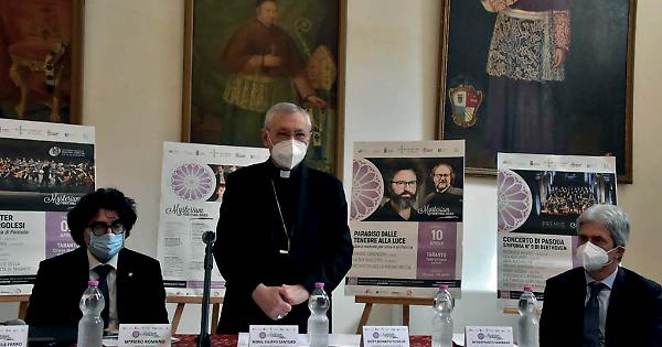 Con queste parole l’arcivescovo Monsignor Filippo Santoro ha introdotto la conferenza stampa del Mysterium Festival alla quale erano presenti, fra gli altri, don Emanuele Ferro, portavoce dell’arcivescovo e parroco del duomo di Can Cataldo; Dani Fusillo, presidente del Comitato scientifico; i Maestri Piero Romano e Pierfranco Semeraro, direttori artistici della rassegna. E, ancora, il presidente de Le Corti di Taras, Giovanni Ammirati; la direttrice del MArTA, Eva degl’Innocenti, in rappresentanza del Comitato scientifico, Adriana Chirico, e dell’associazione Panificatori Taranto, Emma Prunella. «Felicissimo che il Mysterium torni all’interno della Quaresima – dice Piero Romano – e vicino ai Riti della Settimana Santa e la Santa Pasqua, momento particolarmente sentito dalla nostra città». Il Mysterium Festival torna, dunque, ad animare la città di Taranto con la sua ottava edizione.