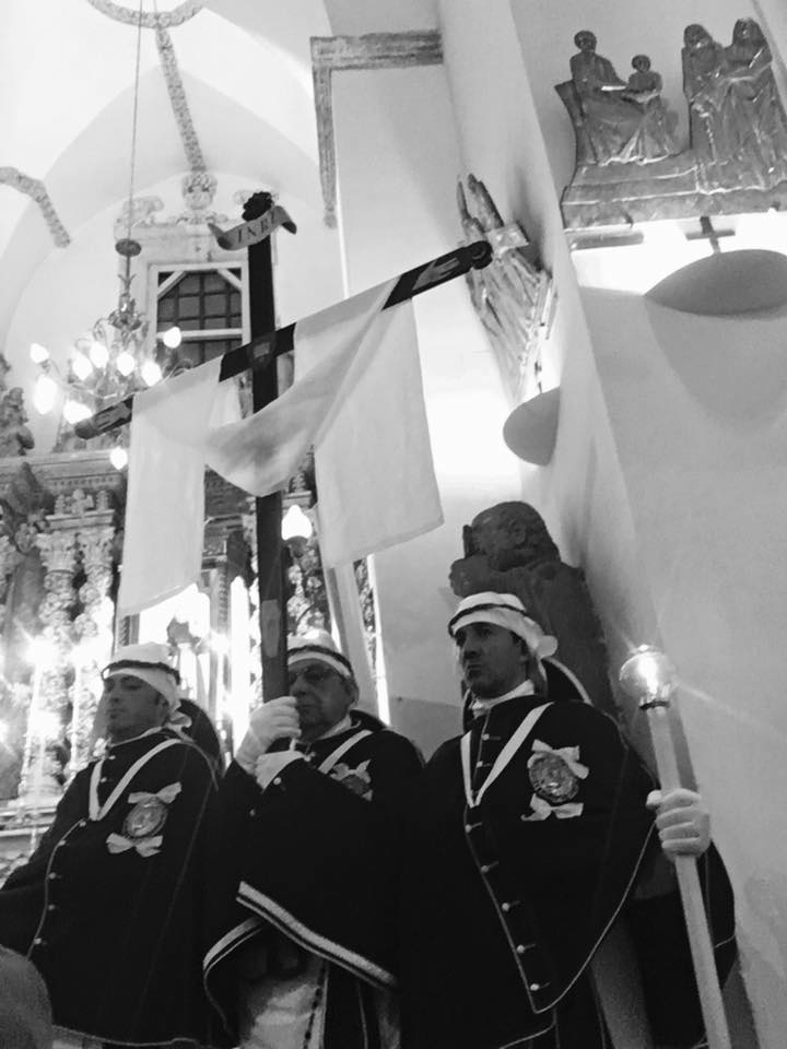 Solo nella chiesa del Carmine, al termine della funzione, avrà luogo il rito dell’adorazione, riservata ai confratelli presenti. Questi ultimi, a due a due e al suono delle marce funebri, percorreranno lentamente il corridoio centrale e, giunti davanti all’altare, s’inchineranno davanti alla Croce penitenziale.