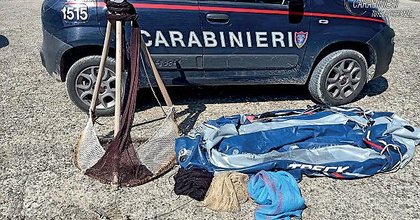 Al termine dei controlli, è stato eseguito il sequestro delle attrezzature utilizzate, ovvero rastrello, reti e sacchi in juta, nonché di un canotto gonfiabile che il pescatore di frodo riempiva di volta in volta con i molluschi catturati, mentre le telline, essendo ancora vive, sono state gettate in mare.