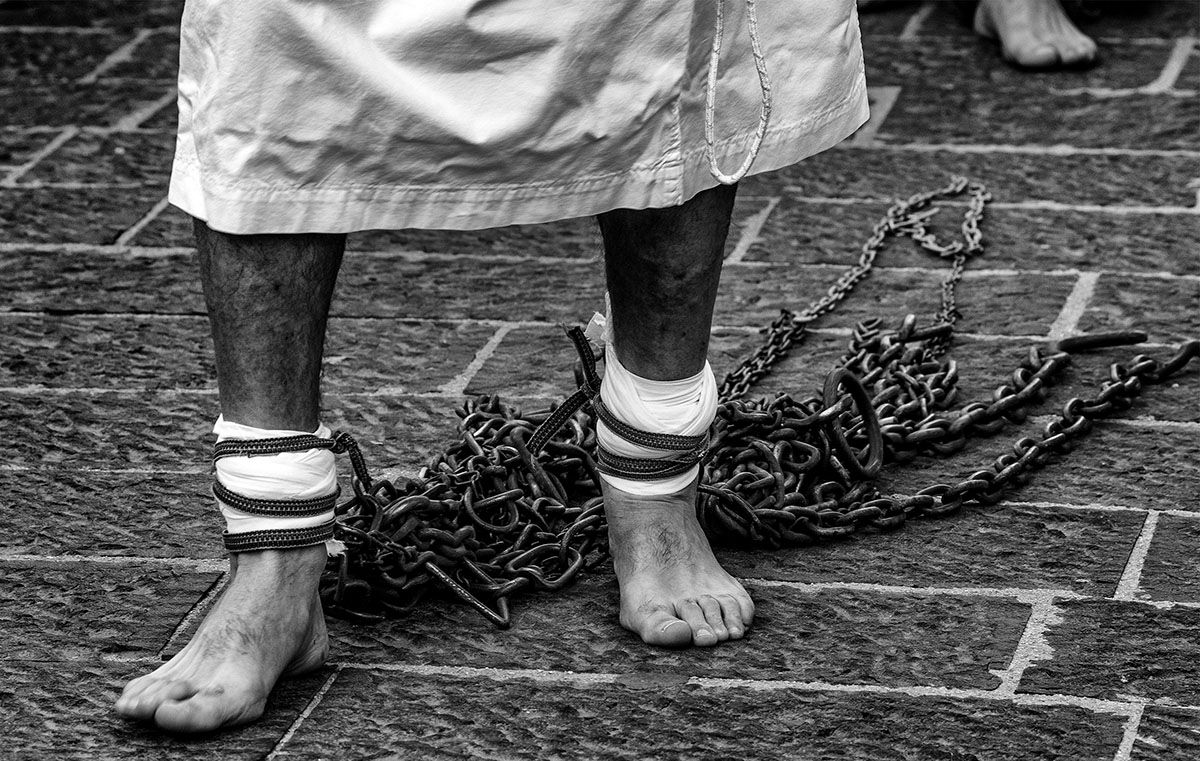 Le catene trascinate sull’asfalto segnano il ritmo, mentre il battito secco della trocchiola accompagna i passi (foto Carmune La Fratta)