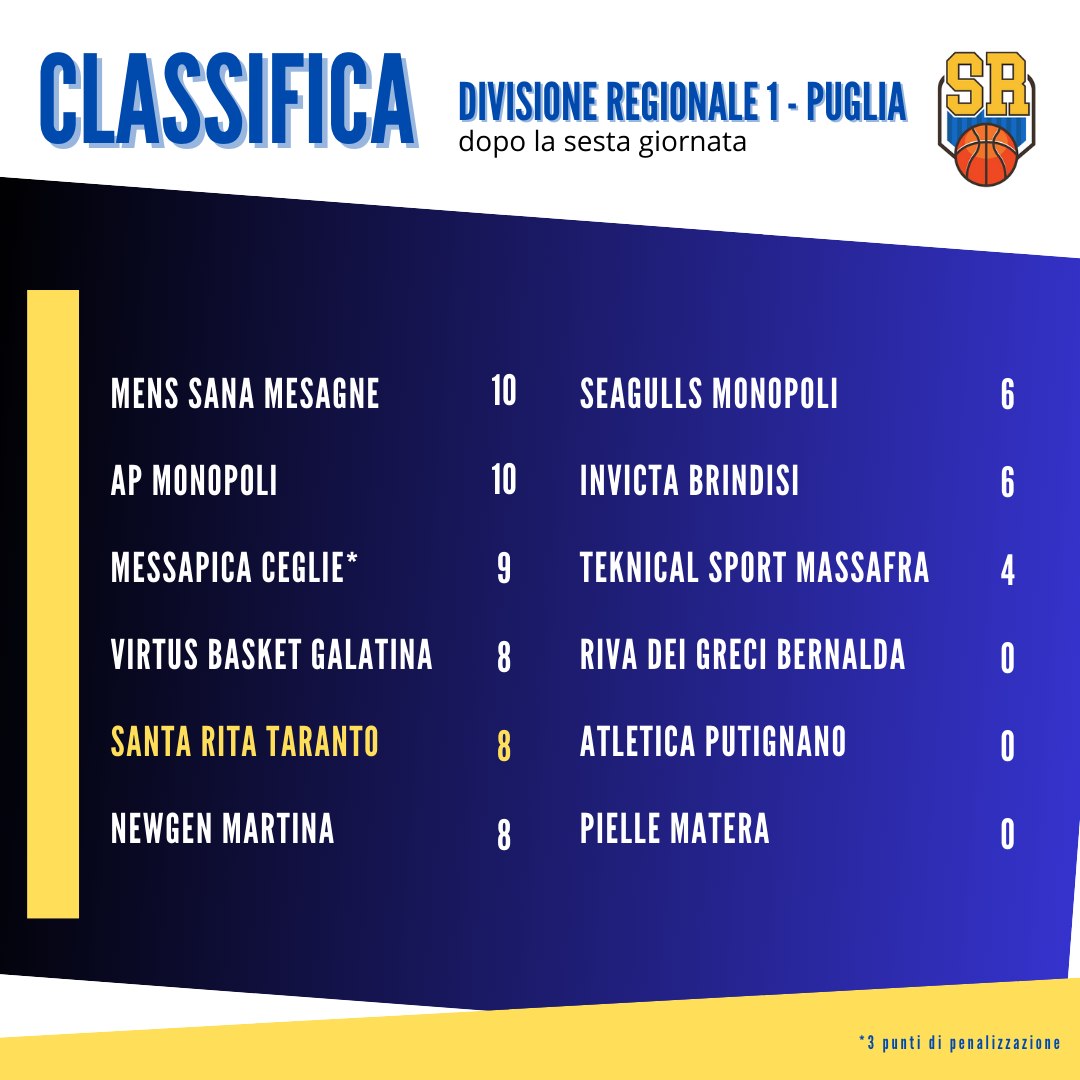 Vittoria a Matera, nella prima delle due trasferte consecutive in calendario, per la Santa Rita Basket Taranto impegnata nel campionato di Divisione Regionale 1. Per i ragazzi di coach Leale si è trattato del quarto successo in campionato su sei gare sinora disputate.