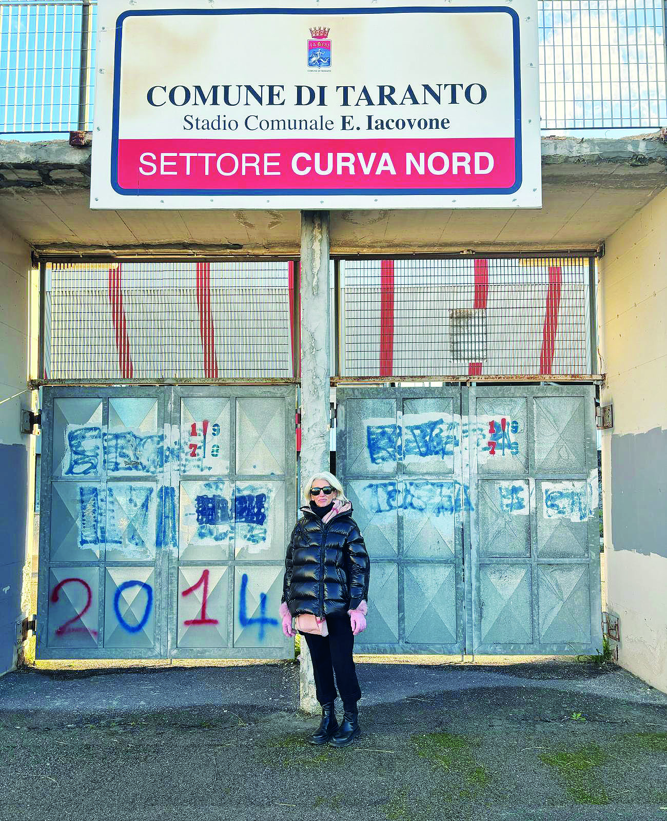Paola Raisi davanti alla Curva Nord dello Stadio Erasmo Iacovone