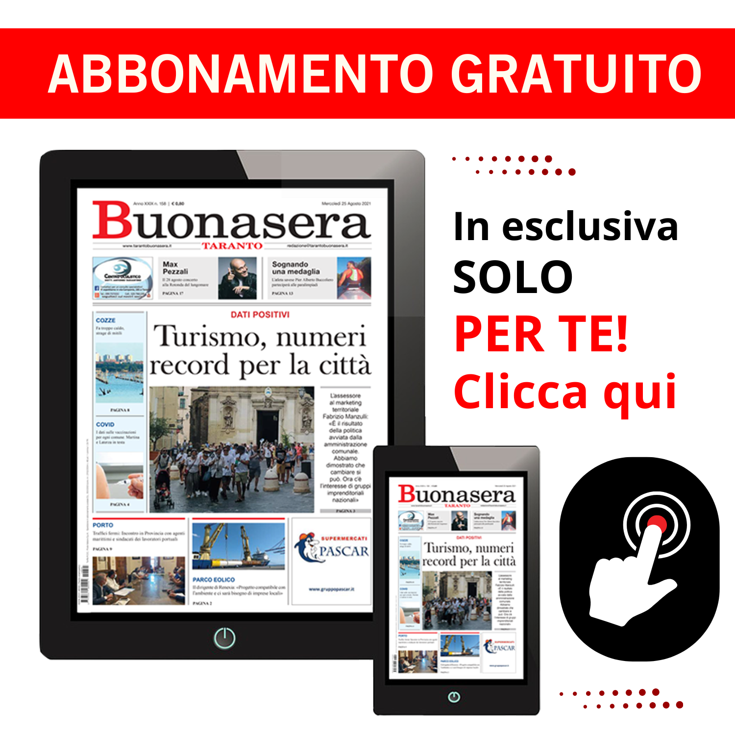 Ai nostri lettori tradizionali, quindi, da oggi, offriamo un ABBONAMENTO GRATUITO ANNUALE all'edizione digitale giornaliera di Buonasera con l'accesso diretto SENZA LIMITI a tutti i contenuti dell'edicola digitale, del nuovo sito web e della App.