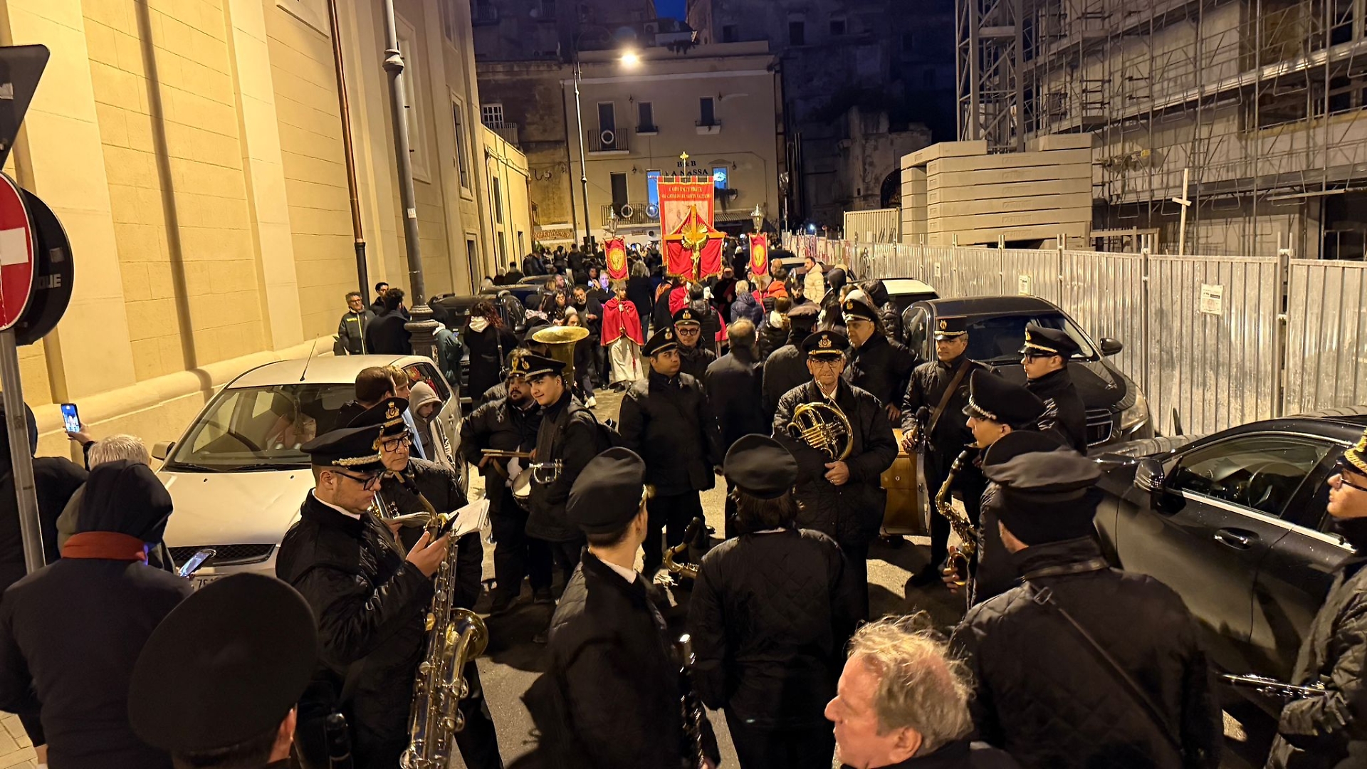 Il corteo è un intreccio di fede e musica. C’è chi cammina in silenzio, chi si commuove, chi porta i bambini sulle spalle, perché imparino anche loro la bellezza della tradizione.