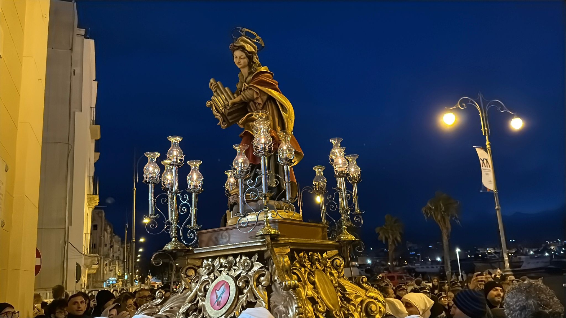 Da lì la processione per accompagnare il simulacro fino alla Chiesa di San Giuseppe con il sottofondo della musica che fa sentire per la prima volta il clima natalizio in città.