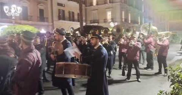 TARANTO - Concerto di marce funebri da record quello svoltosi la sera di Giovedì Santo in piazza Giovanni XXIII, davanti alla Chiesa del Carmine, che ha visto impegnati oltre centoventi musicisti.